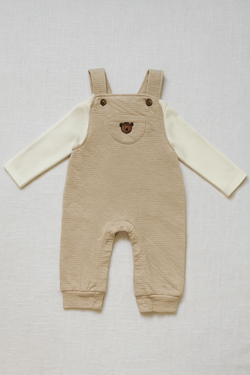 Unsere Babybekleidung wird aus 100 % hochwertiger Baumwolle hergestellt – weich, atmungsaktiv und besonders sanft zur empfindlichen Haut Ihres Babys. Jedes Teil vereint Komfort, Funktionalität und zeitlosen Stil, sodass sich Ihr Kind beim Spielen, Schlafen oder Kuscheln rundum wohlfühlt. Mit viel Liebe zum Detail gefertigt, sind unsere Kleidungsstücke eine nachhaltige Wahl für Eltern, die Qualität, Langlebigkeit und Sicherheit schätzen.